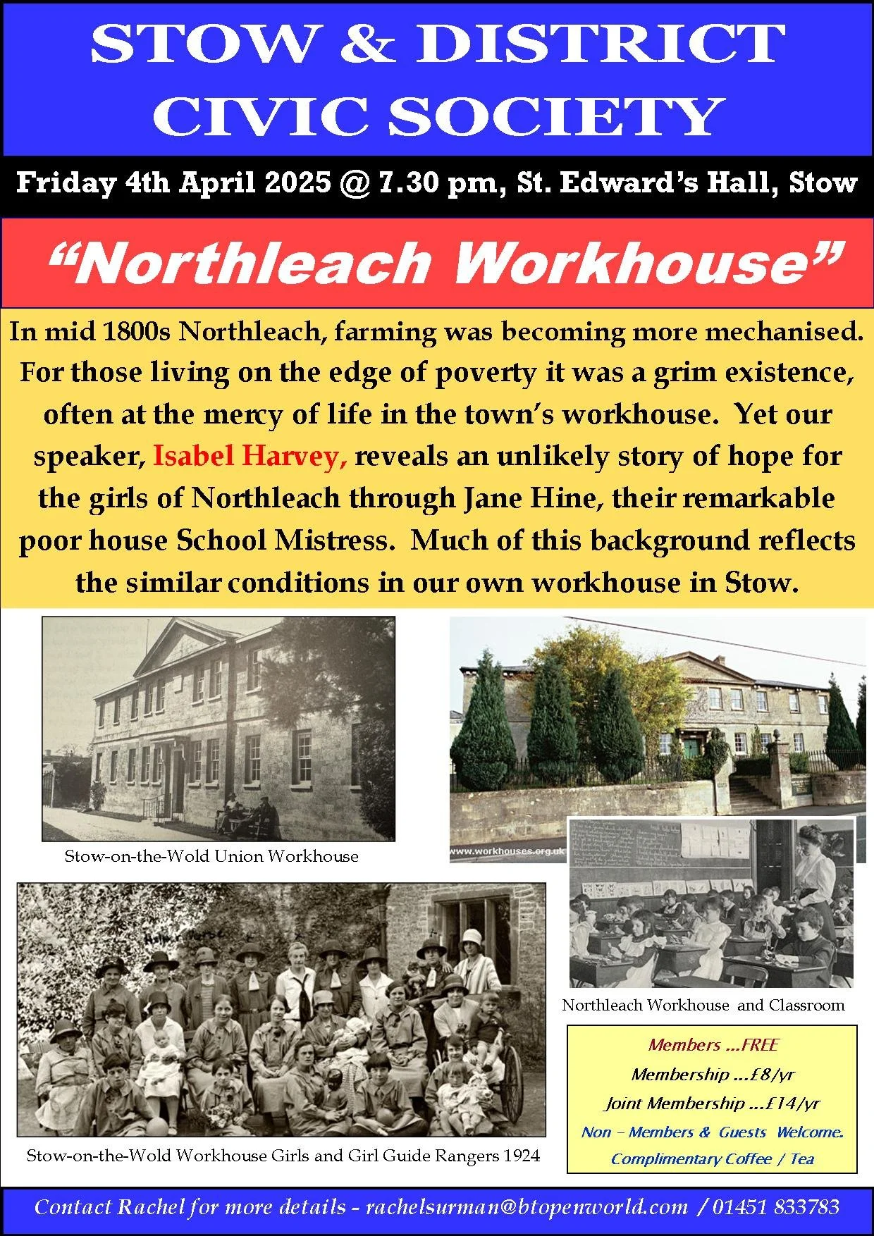 Apr 4 Northleach Workhouse - Isabel Harvey Friday 4 April 2025 19:30 21:30 St. Edward's Hall (map) Google Calendar ICS View Event →